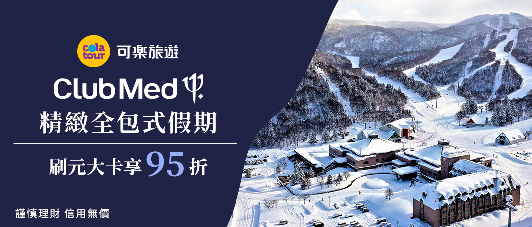 活動期間內於可樂旅遊官網訂購【Club Med】精緻全包式假期系列商品,訂單輸入優惠代碼「YUANTACM2026」並刷元大銀行信用卡全額付款,享專屬95折優惠!