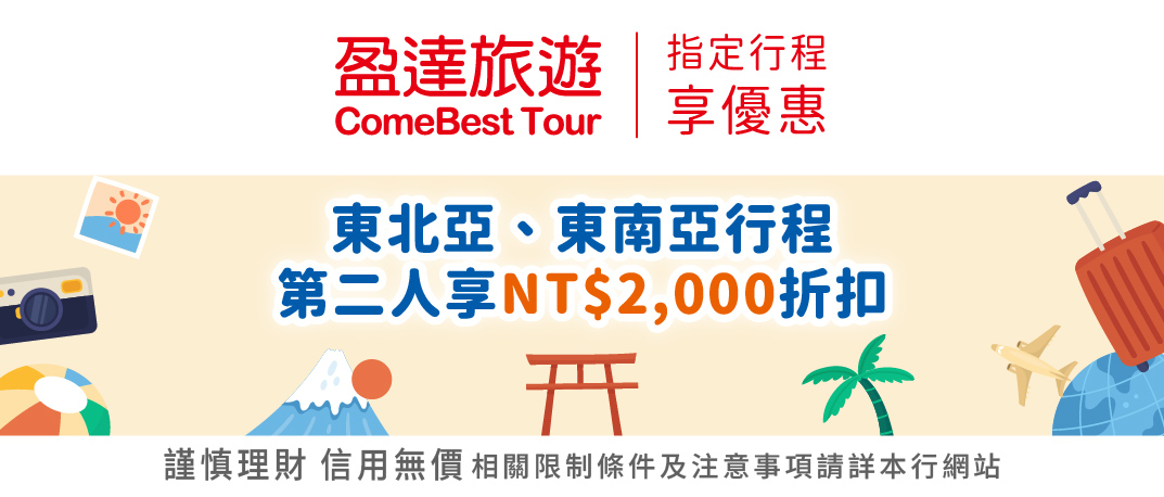 【盈達旅遊】東北亞、東南亞行程第二人享NT$2,000折扣