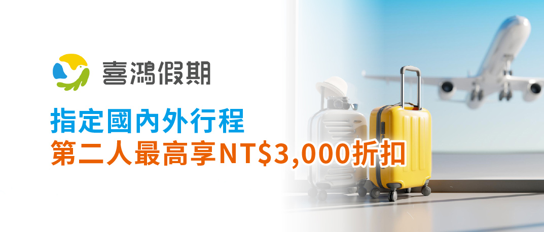 【喜鴻假期】指定國內外行程 第二人最高享NT$3,000折扣