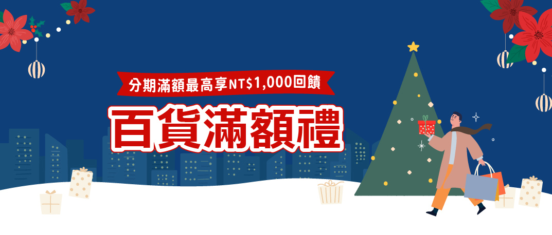單筆分期達NT$30,000贈台北101購物金2,000點(價值NT$500) (限量30份)