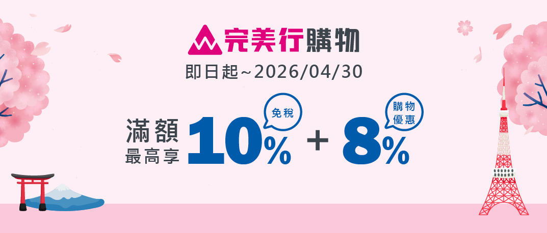日本【完美行】購物滿額免稅 最高享18%折扣