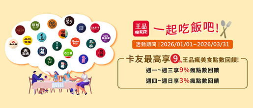 一起吃飯吧!卡友最高享9%王品瘋美食點數回饋!
