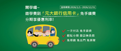 活動期間不分公、私立學校刷元大信用卡繳學費,繳完學費後於下方「指定通路」申請分期,享優惠利率2.88%起,最高可分到30期