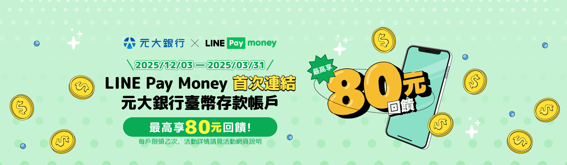 因應微軟將於2022/06/15起停止支援IE瀏覽器,元大銀行官方網站將配合同步調整,部分功能可能會有無法正常顯示的情況。為持續提供您最優質的服務,建議您使用其他瀏覽器,如:Microsoft Edge、Chrome、Safari或Firefox等,相關公告詳見官網