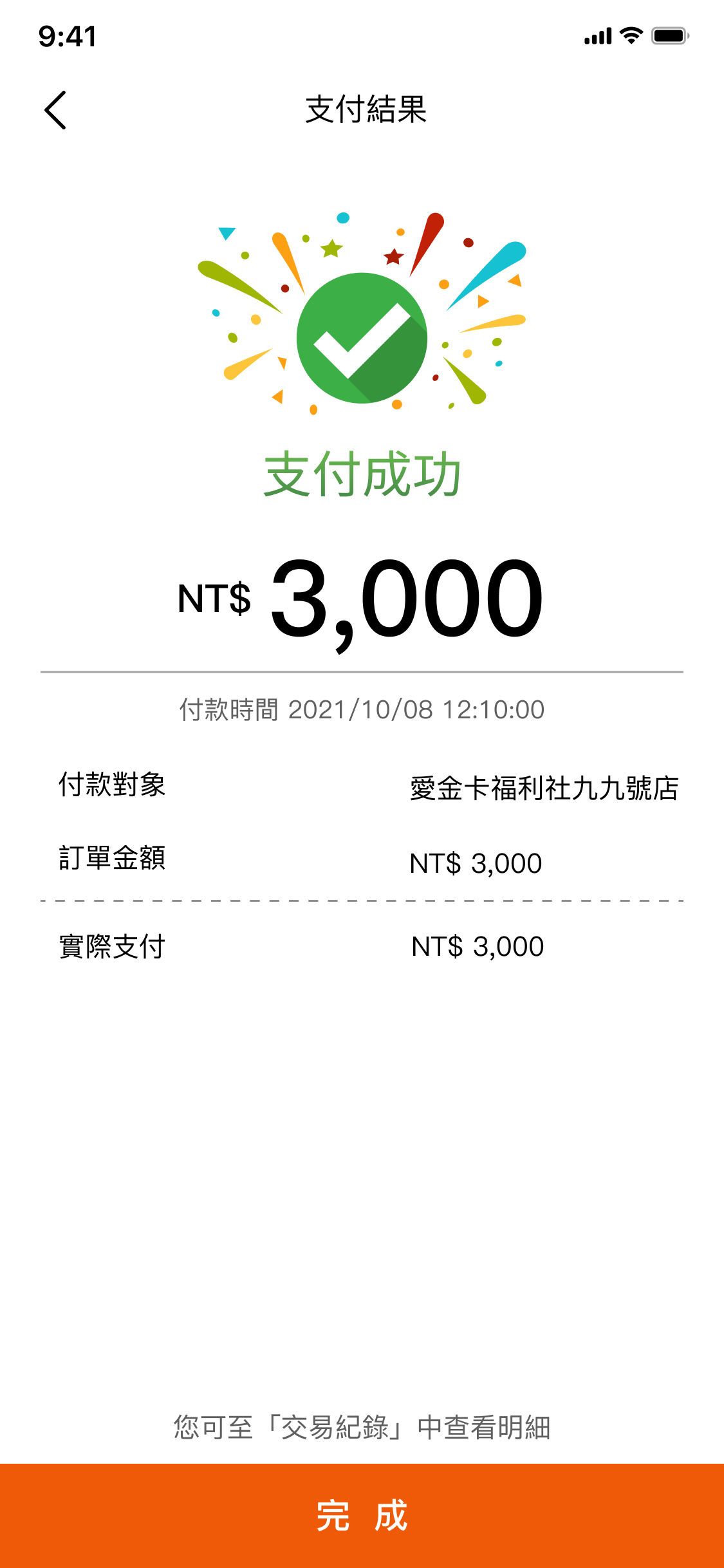 交易付款成功,提供E-mail/推播通知服務,使用更安心