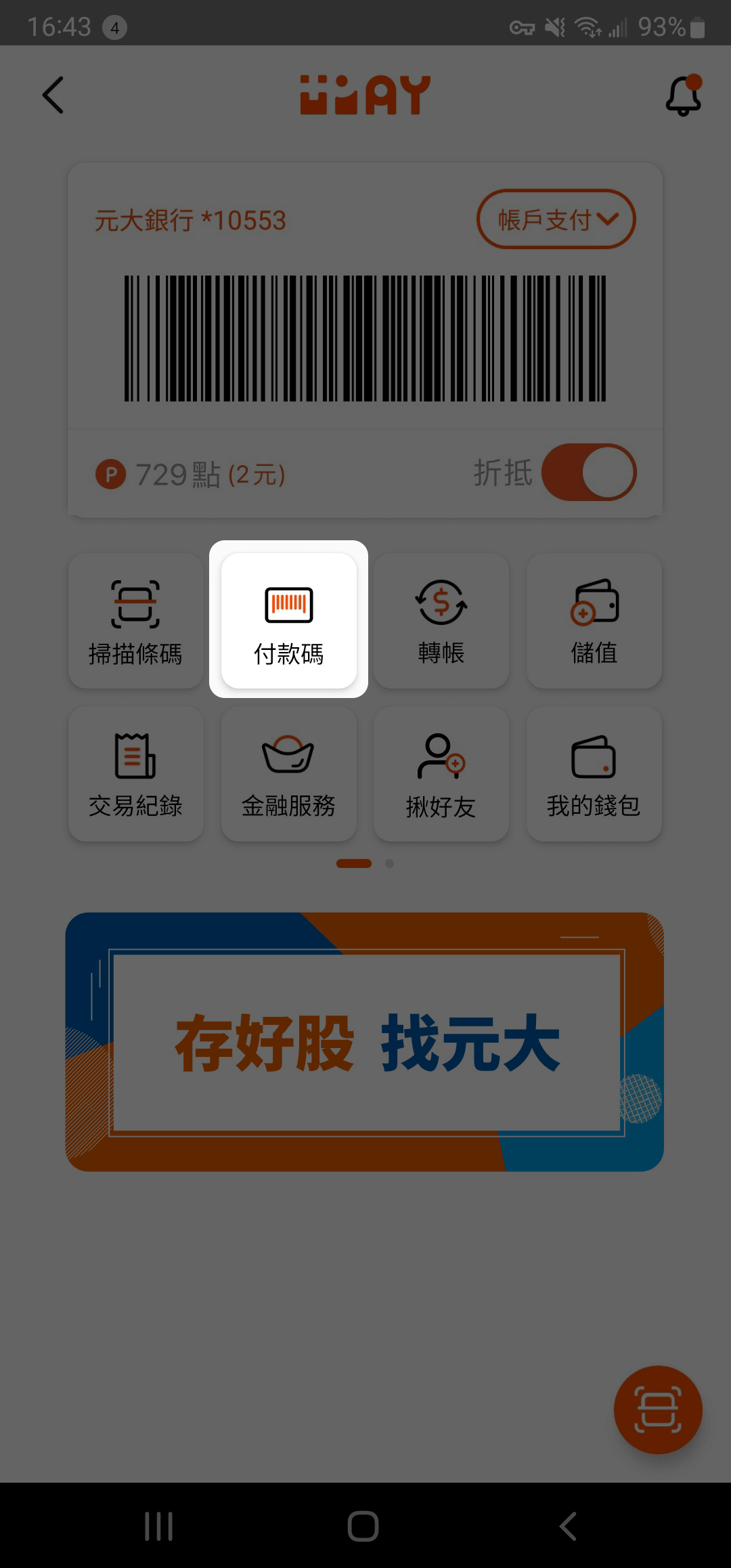 登入元大行動銀行,也可綁定全盈+PAY,並連結元大銀行帳戶進行消費,使用更便利(限Android 7.0版本以上使用)