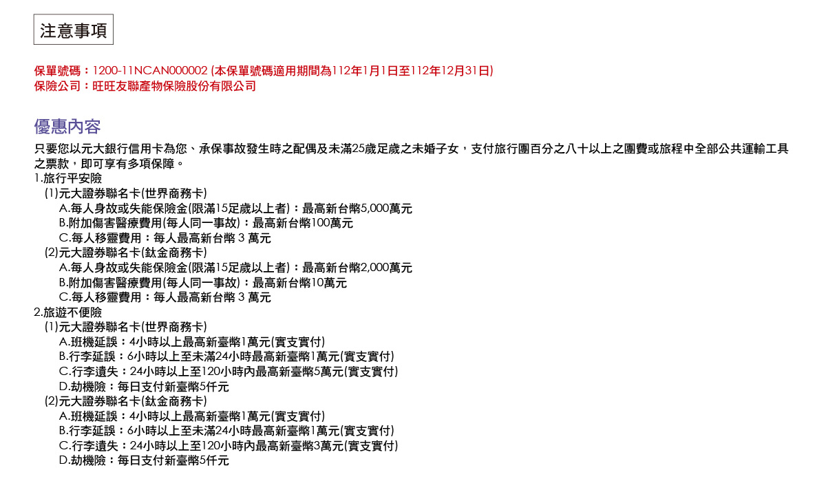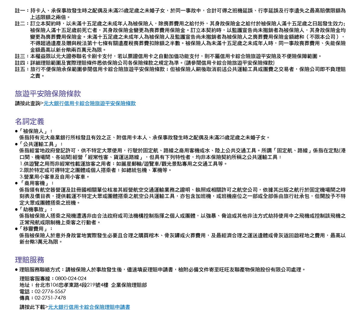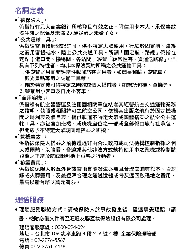 元大銀行信用卡綜合險旅遊平安保險條款 元大銀行信用卡綜合保險理賠申請書