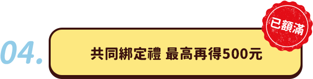 加碼禮之限量名額依元大銀行「五倍券加碼禮登錄」網頁進行活動登錄(包括共同綁定人數,含本人)之時間順序核算回饋資格。