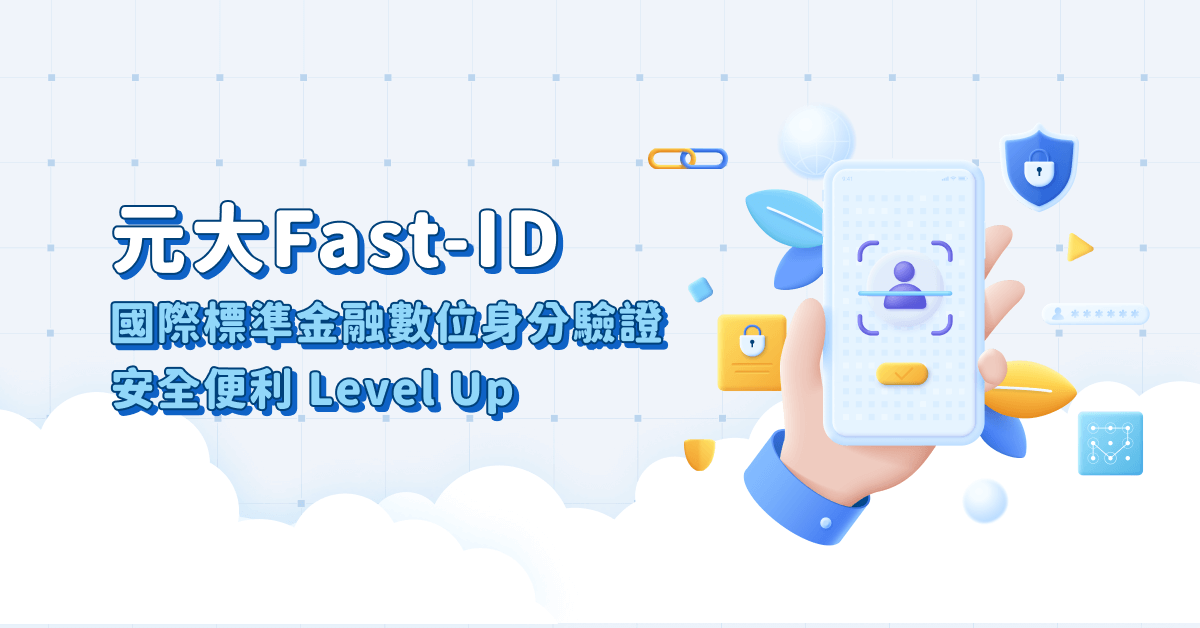 元大Fast-ID是「元大銀行與元大金控集團旗下子公司(元大證券、元大人壽、元大期貨、元大投信)」依照國際FIDO聯盟驗證標準所規劃的身分驗證服務。