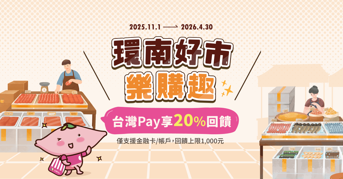 環南市場受理「台灣Pay」交易指定攤商,如有異動以元大銀行官網公告為準。