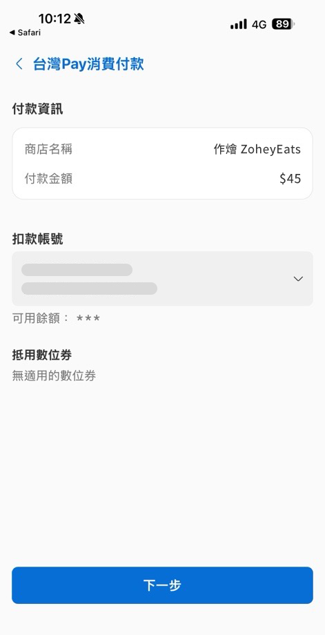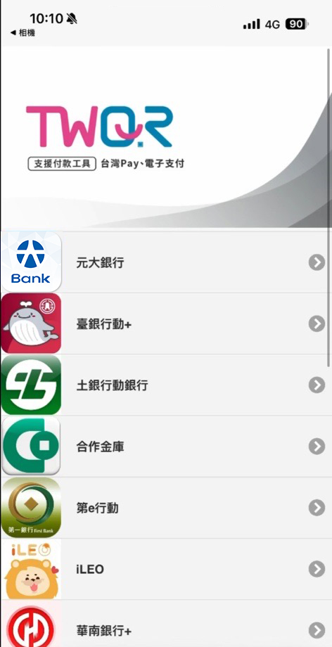 在TWQR內選擇元大行動銀行APP(或其他銀行APP)進行付款。