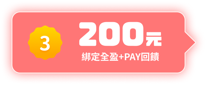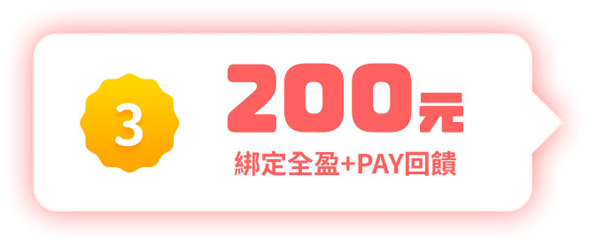 - 於活動期間內,數位存款帳戶新戶以元大銀行存款帳戶新綁定全盈+PAY,享200元回饋(限額1,000名,每人限領一次,送完即止)。