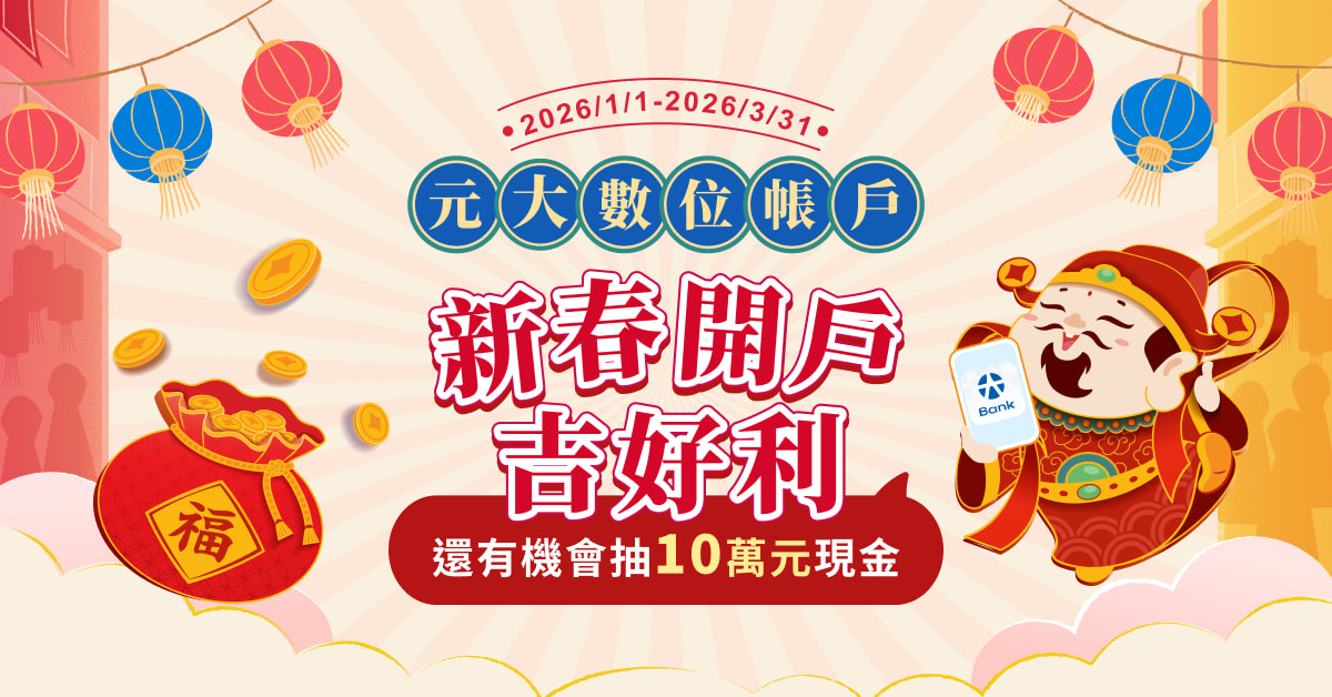 - 「元大數位帳戶 新春開戶吉好利」活動內容: