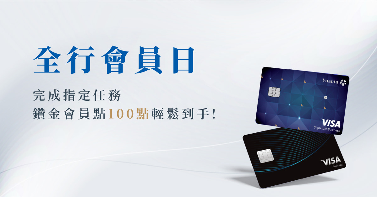 鑽金會員於會員日,持元大銀行信用卡正卡或附卡至元大銀行於迎賓系統過卡登錄,並於當日下午3點半前完成指定任務,通過檢核後次月可獲得鑽金會員點100點