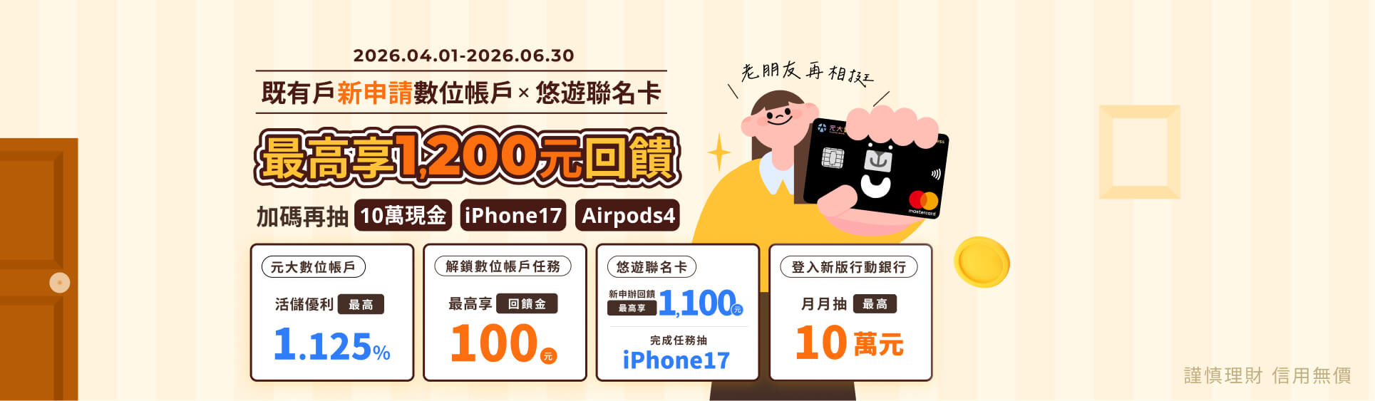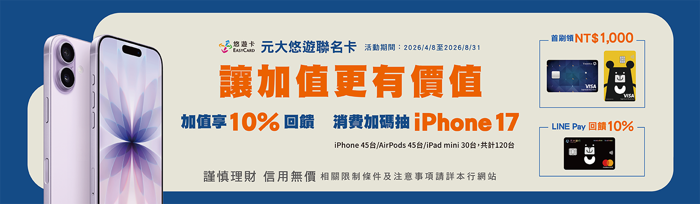 親愛的客戶,您好: 因應微軟將於2022/06/15起停止支援IE瀏覽器,元大銀行官方網站將配合同步調整,部分功能可能會有無法正常顯示的情況。為持續提供您最優質的服務,建議您使用其他瀏覽器,如:Microsoft Edge、Chrome、Safari或Firefox等,相關公告詳見官網 最新消息,謝謝。